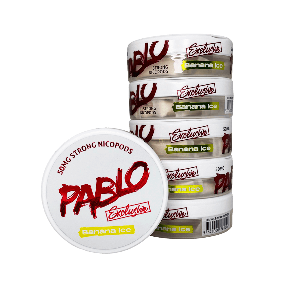 Pablo entered the nicotine pouch market with one clear mission: to deliver the most powerful nicotine experience possible in a tobacco-free format. While established brands like ZYN and VELO dominated the market with moderate-strength offerings typically ranging from 3-10mg per pouch, Pablo smashed through those limits with pouches delivering 15-30mg per pouch — instantly earning a reputation as one of the strongest nicotine pouch brands in the world. The Exclusive line pushed this even further, reaching 50mg/g (30mg per pouch) and establishing Pablo as the undisputed leader in maximum-strength nicotine pouches. The Exclusive Banana Ice variant brought one of the most unexpected and adventurous flavor combinations to this extreme tier — a sweet, tropical banana flavor crashed into an icy cool menthol finish that is virtually unheard of in the nicotine pouch market. This daring flavor choice appealed to users who wanted Pablo’s legendary maximum strength in something truly fun, surprising, and unlike anything else available. Pablo has since become Europe’s most loved nicotine pouch among experienced users, with availability across Europe, the USA, and Canada.